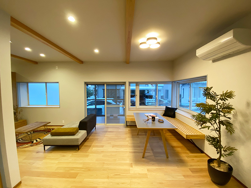 ダイニング部分には、造り付けのベンチがあります。