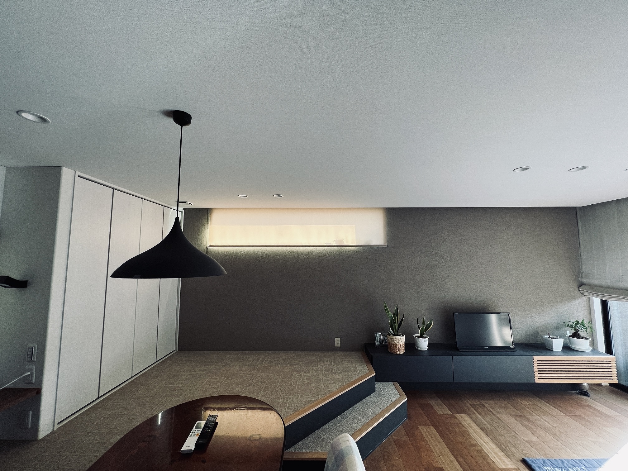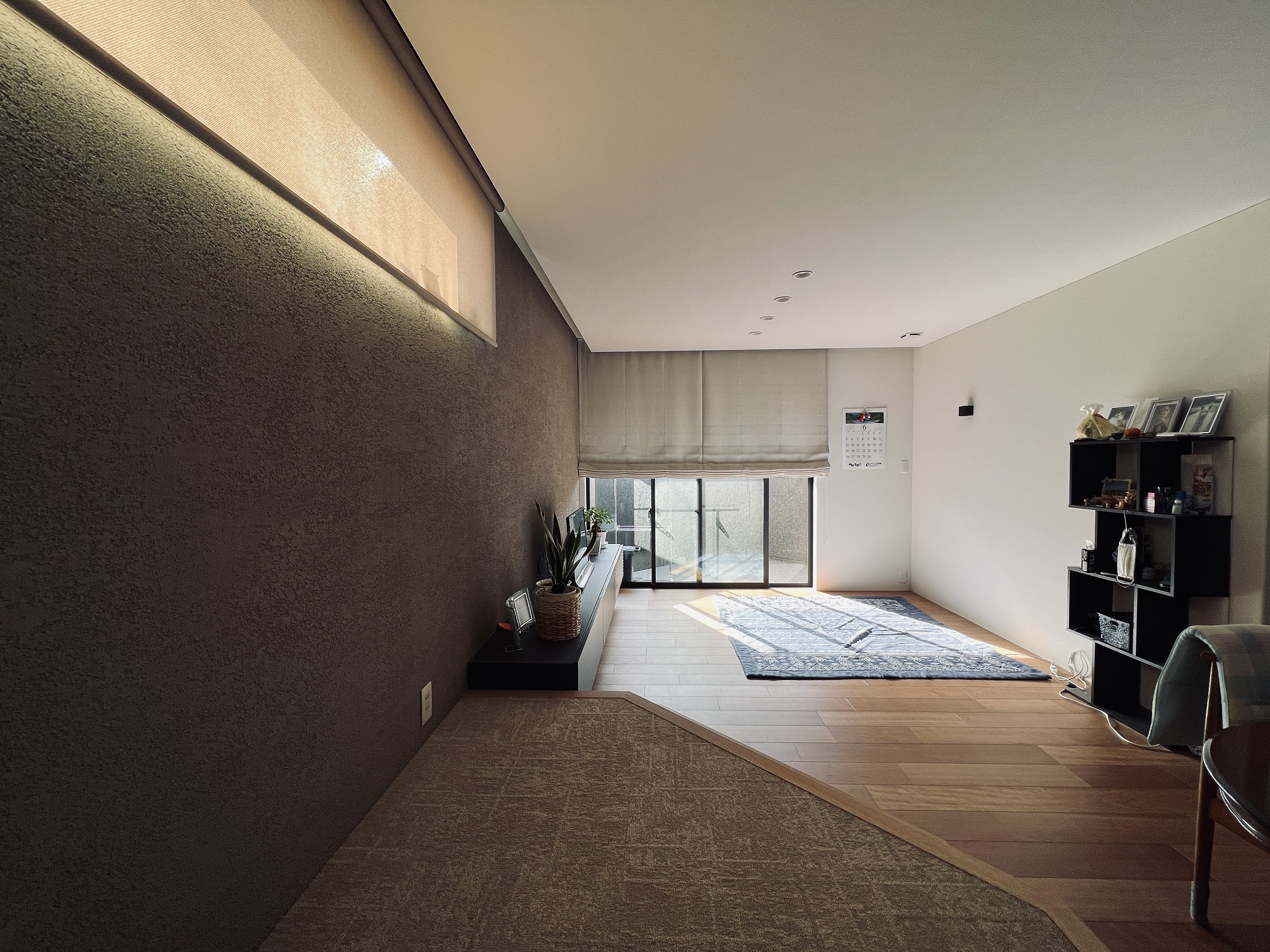 外観はモダンでリッチ、LDKには小上がり、リビングからテラスへ続く解放感