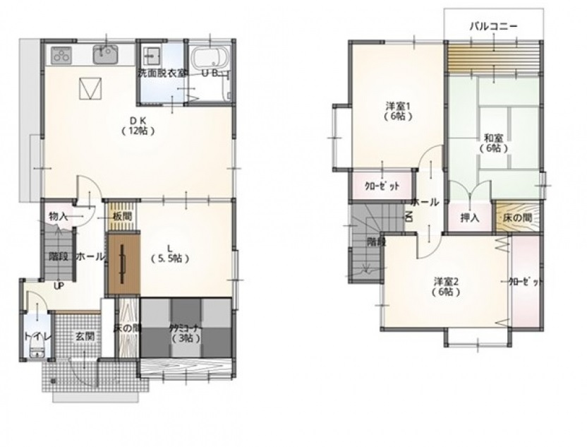 | その他 | 1F:LDK20.5/浴室/洗面/トイレ 2F:洋室6/洋室6/和室6/サンルーム/バルコニー |